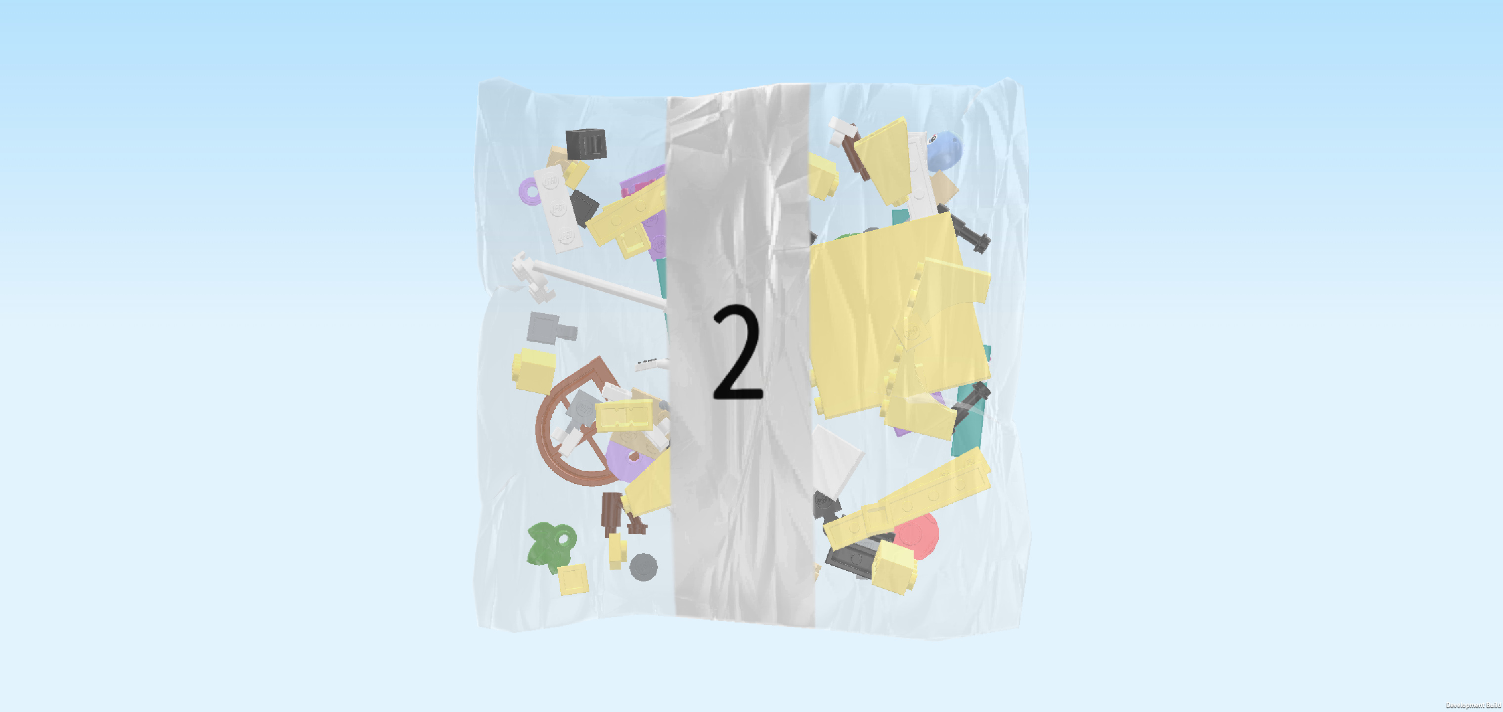 Open the box. It contains visual building instructions, 2 numbered bags, 1 sticker sheet and 1 loose piece: 1 plate 8x16. We will refer to the bag numbers to guide you through the building process. Please ask a sighted person to help you identify the correct bags!
